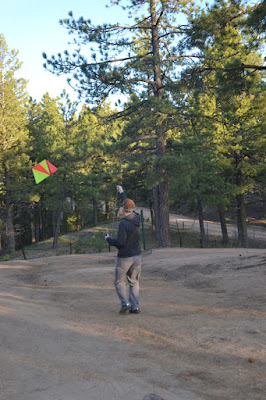 Oh - and as for my few friend The Kite, it got a slight test run. I tried, tried and tried again to get it up in the sky when we first got there but alas...no luck. We'd have it set out with some of the line ready to go for whenever a gust of wind would come up. We'd be sitting there enjoying our dinner, hear the wind, both drop our forks/food etc and run over to the kite to try and get that thing going. I will admit to being a little too aggressive/excited with it because all I can remember is Hunter yelling "SLOW DOWN!!! YOU HAVE TO SLOW DOWN!" hhahaha. Finally, as he was getting the tent set up, I would just run around with the kite behind me and I said to him "The best part is that when I'm running with it, I can't tell if it's up in the sky or not - so I can believe it is!" He replies "Babe. It's about an inch off the ground." He did have the idea to let me sit in the back of his truck with the kite while he drove it to see if that worked or not....but I think we'll just have to wait for the next windy day in Denver. And I'm okay with that. : >