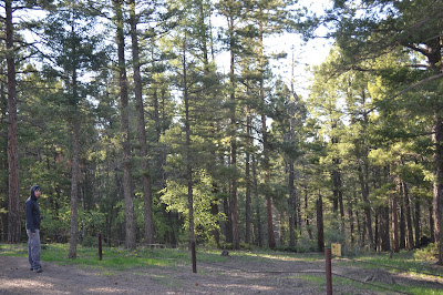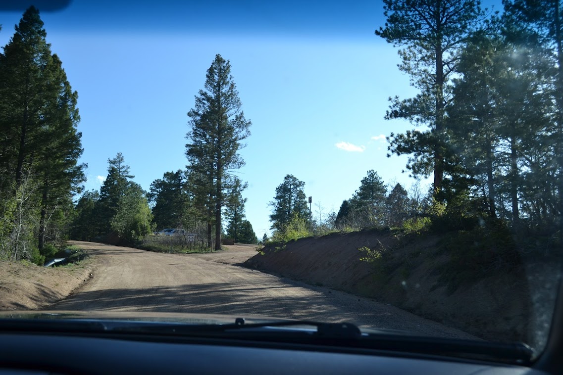We find our campground in Pike National Forest, drive around a bit before finding out campsite. Get out to walk around and a few seconds after getting out of the car it dawned on us.